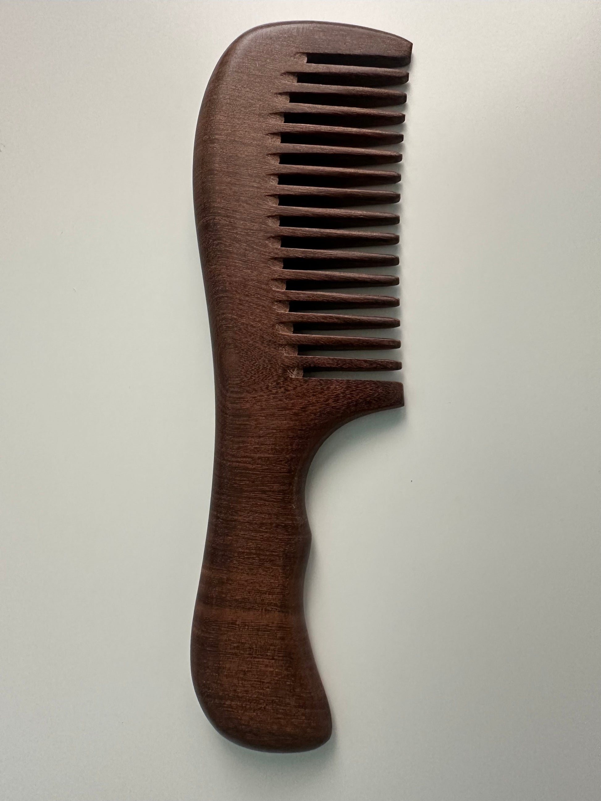 El peine de sándalo es un imprescindible en el cuidado del cabello. Fabricado con madera de sándalo natural, su aroma cálido y relajante convierte el momento de peinarte en un ritual de bienestar.